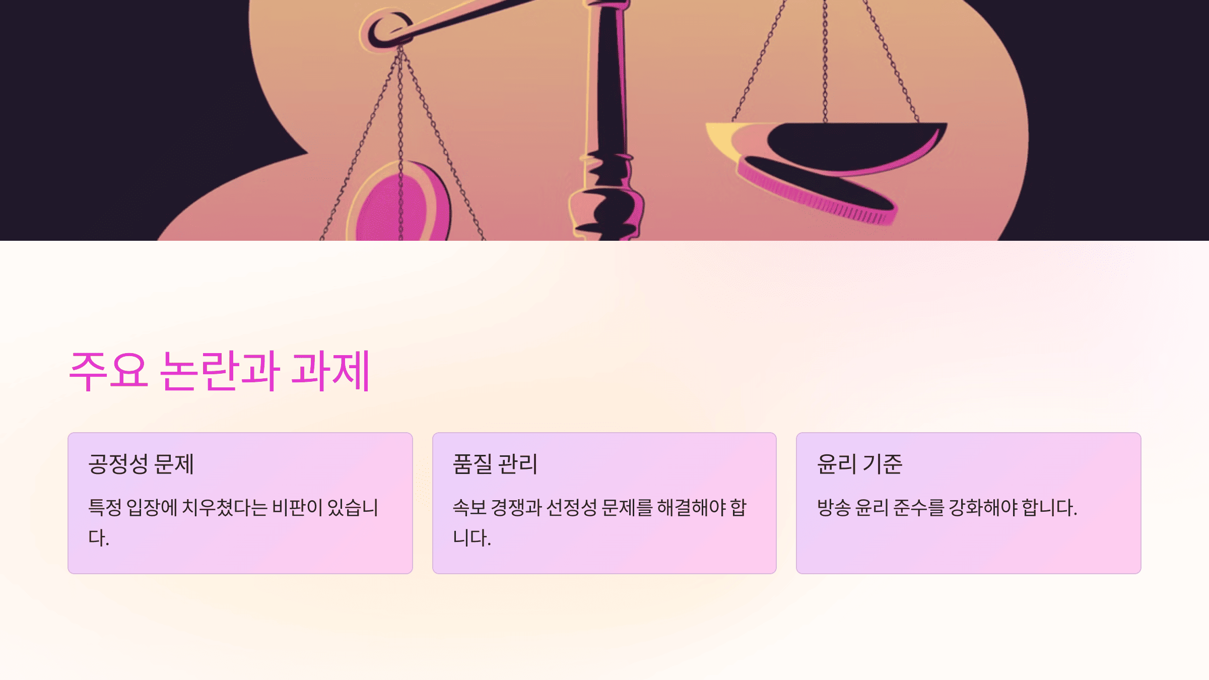 - 윤리 기준: 방송 윤리 준수를 강화하였다.