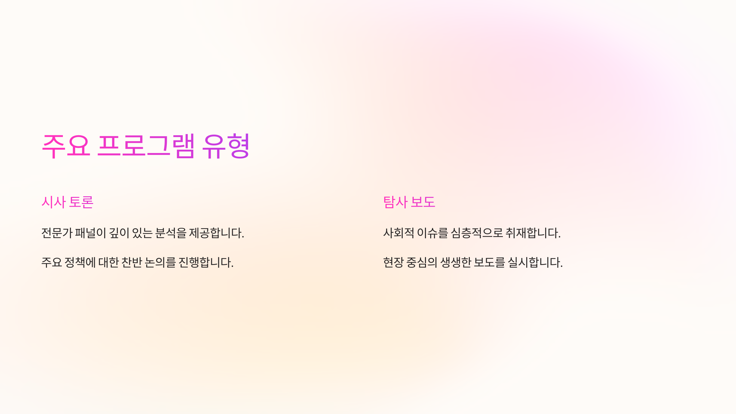 - 포맷 다양화: 토크쇼, 다큐멘터리 등 다양한 형식을 도입하였다.