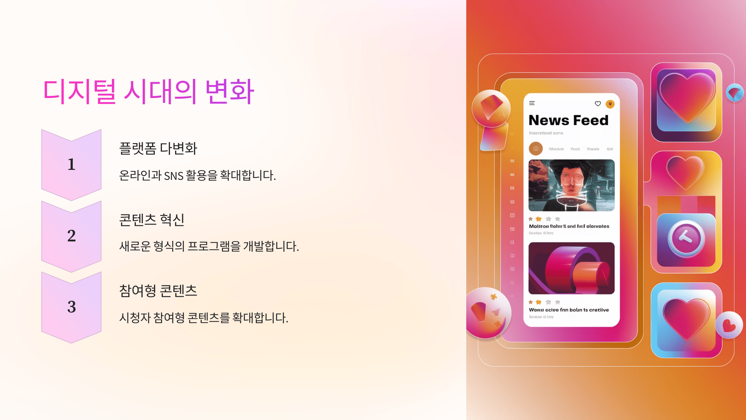 - 참여형 콘텐츠: 시청자 참여형 콘텐츠를 확대하였다.
