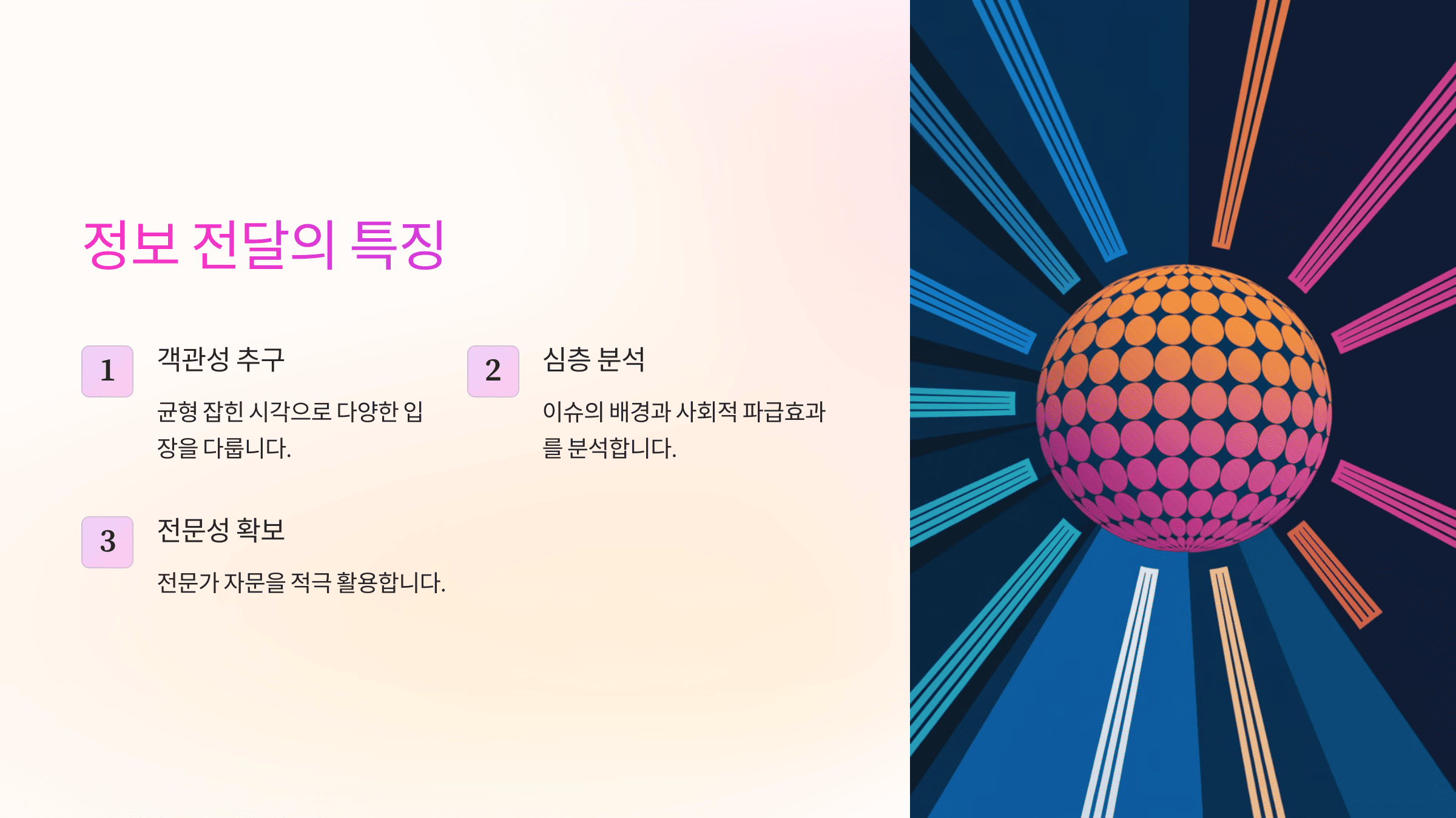 - 심층 취재: 사회적 이슈를 깊이 있게 파헤쳤다.