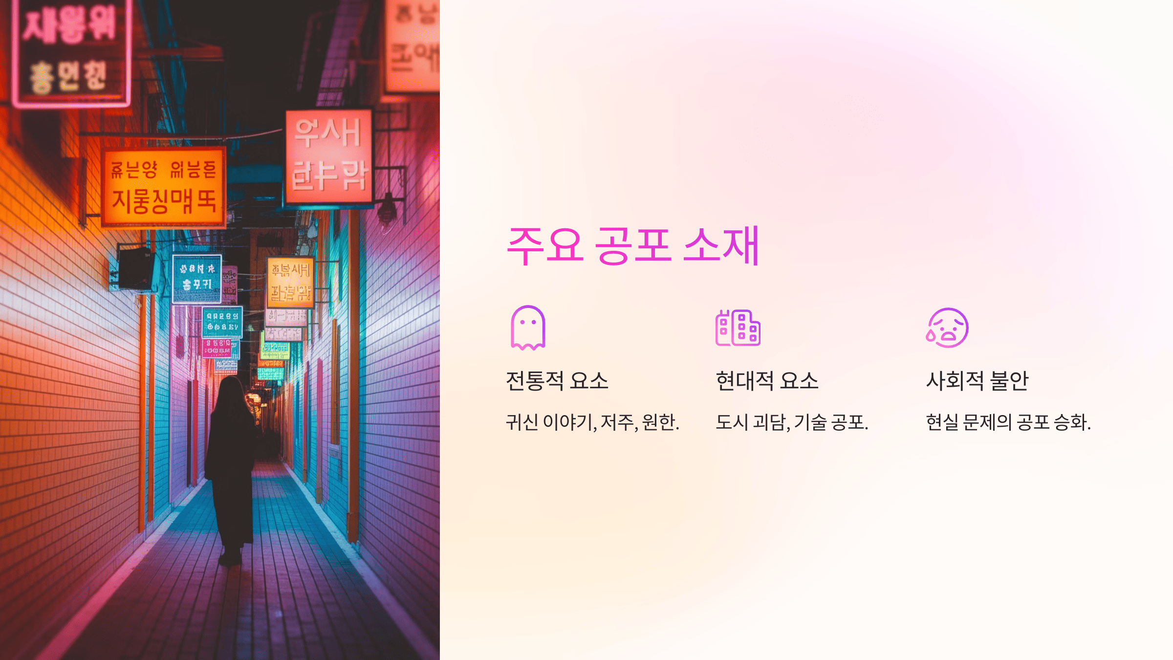 - 소재 다양화: 현대 사회의 새로운 공포 요소를 발굴하고 있다.