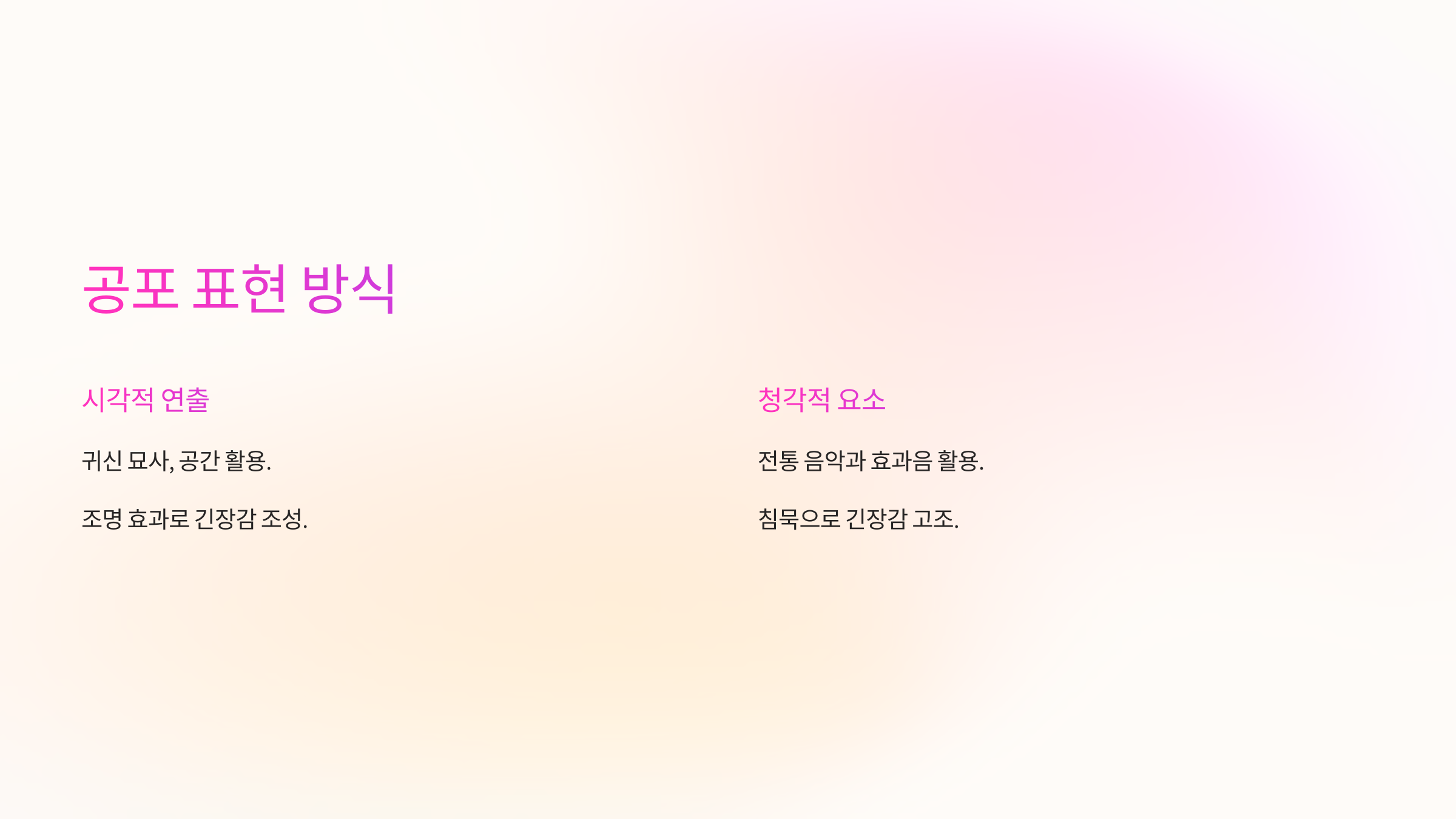 한국의 공포 드라마와 영화는 독특한 정서와 문화적 배경을 바탕으로 독자적인 공포 코드를 발전시켜왔다. 서구의 공포물과는 다른 한국만의 특징적인 공포 요소와 그 효과를 자세히 분석해보았다.