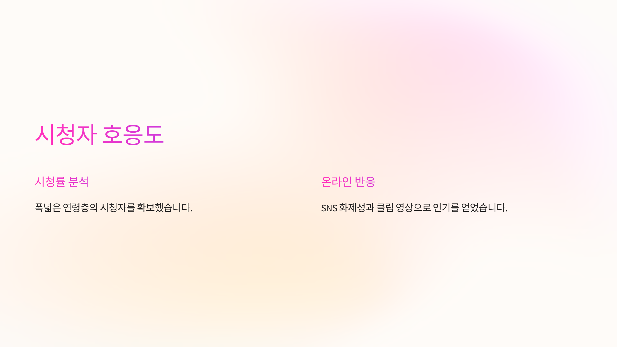 - 타깃 시청자: 폭넓은 연령층의 시청자를 확보하였다.