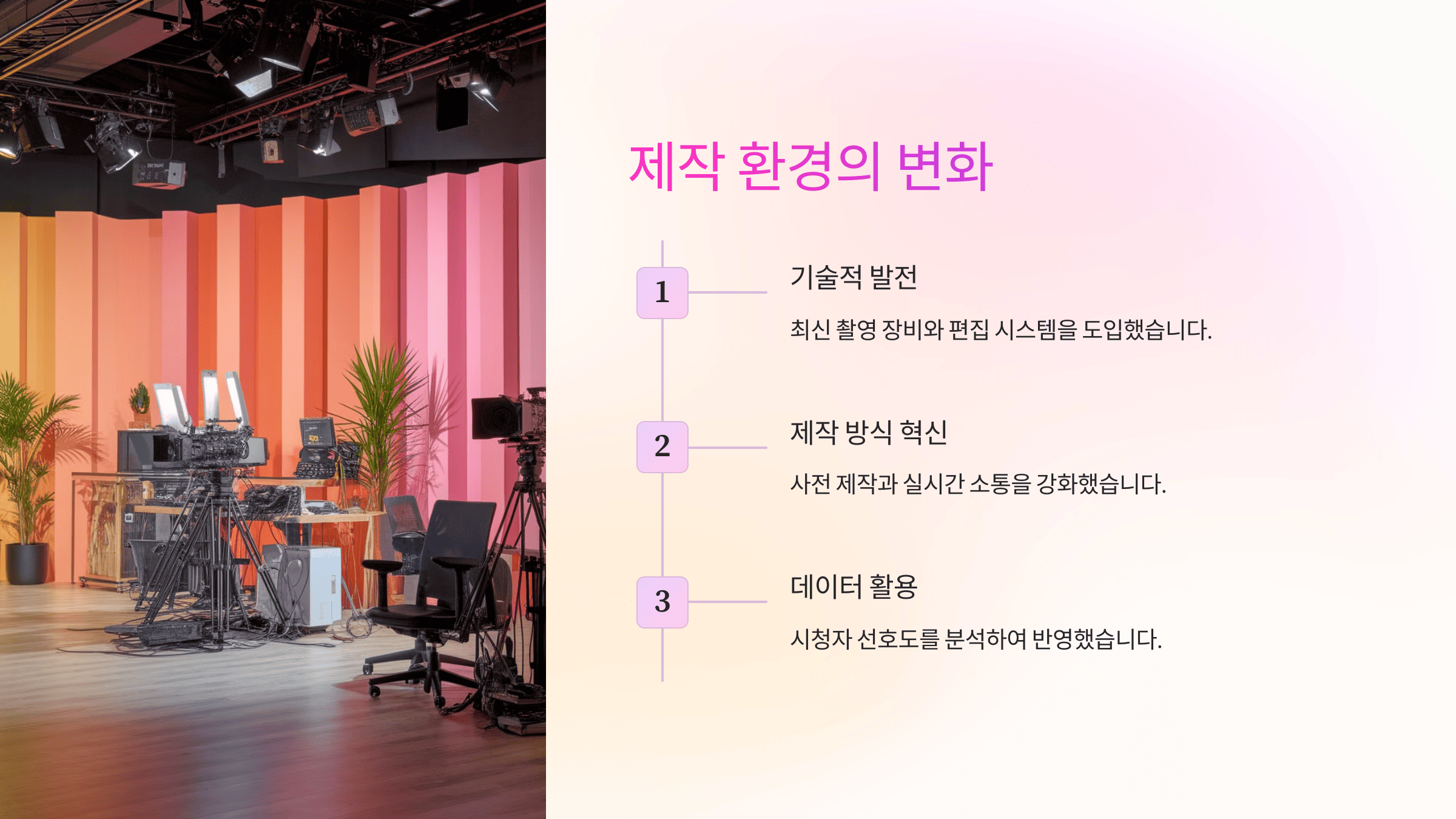 - 사전 제작: 완성도 높은 콘텐츠 제작이 가능해졌다.